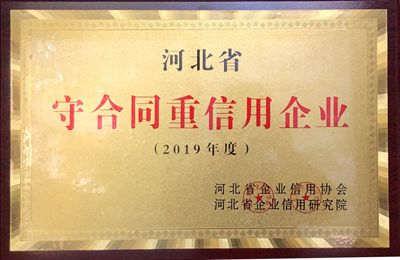 公司榮獲2019年度“河北省守合同重信用企業(yè)”榮譽(yù)稱(chēng)號