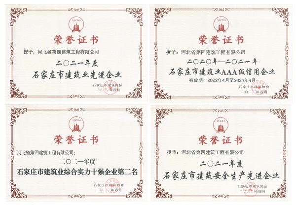 公司喜獲“石家莊市建筑業(yè)先進(jìn)企業(yè)”等四項榮譽(yù)