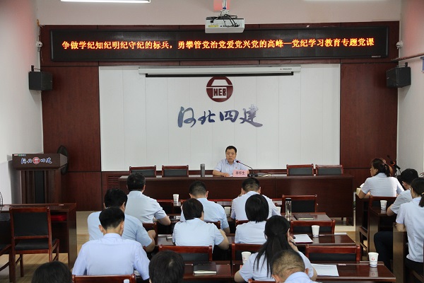 為慶祝中國共產(chǎn)黨成立103周年,推動(dòng)黨紀學(xué)習教育走深走實(shí),6月29日上午,公司黨委副書(shū)記、紀委書(shū)記、工會(huì )主席李懷生以“爭做學(xué)紀知紀明紀守紀的標兵 勇攀管黨治黨愛(ài)黨興黨的高峰”為題,在公司四樓會(huì )議室為各分公司黨總支、直屬黨支部書(shū)記和黨群辦主任,以及公司黨群部門(mén)所有人員,講授了一堂生動(dòng)的黨紀學(xué)習教育專(zhuān)題黨課。