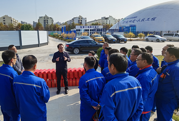 在會(huì )議室,結合項目施工情況,董富強強調,要堅持高標準定位、嚴要求管理,在安全、質(zhì)量、成本等方面做到“六個(gè)強化”,建成四建品牌工程,展現公司良好形象。一是強化安全管控,提高政治站位,落實(shí)文明施工、揚塵防治各項要求;時(shí)刻繃緊安全這根弦,采取多種形式狠抓現場(chǎng)安全教育培訓,進(jìn)一步增強全員安全意識。二是強化質(zhì)量管理,對于正在施工的綜合樓,工程體量大,質(zhì)量標準要更高、過(guò)程管理要更細,務(wù)必壓實(shí)各方責任,嚴格按照方案組織施工。三是強化成本管控,從材料采購到勞務(wù)單價(jià)等各個(gè)環(huán)節,都要精細化管理,積極采用新技術(shù)、新工藝,促進(jìn)降本增效,提高項目盈利水平。四是強化人才培養,要樹(shù)立建樓育人理念,著(zhù)力發(fā)揮“師帶徒、老帶新、傳幫帶”作用,助力青年職工成長(cháng)成才。五是強化宣傳工作,凝聚思想共識,營(yíng)造干事創(chuàng )業(yè)濃厚氛圍。六是強化勞務(wù)實(shí)名制管理,有效規避用工風(fēng)險,做好維穩工作。