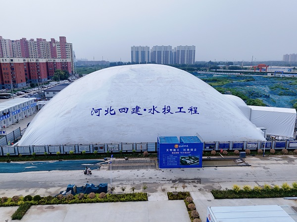 該項目基坑氣膜長(cháng)55米、寬60米、高20.5米,于2024年8月14日正式投產(chǎn)使用,具有安裝簡(jiǎn)單、可循環(huán)利用、綠色環(huán)保及節能增效等顯著(zhù)特點(diǎn),是分公司大力推行綠色施工、文明施工、環(huán)保施工的一項重要舉措。(四分公司)