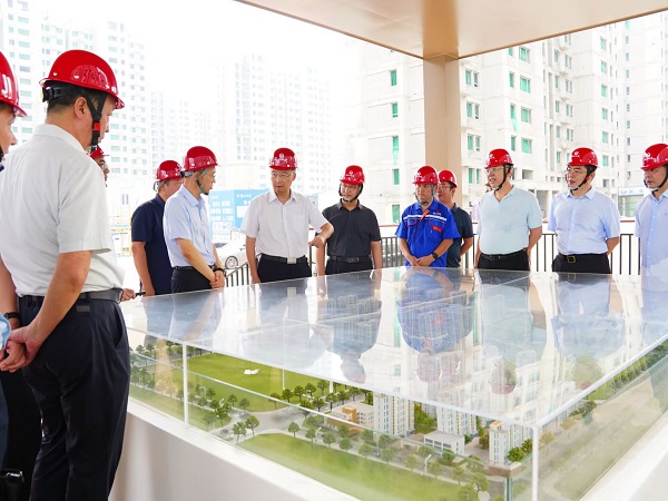 在項目施工現場(chǎng)的實(shí)體沙盤(pán)前,王現坤認真聽(tīng)取了項目整體規劃、建設進(jìn)展的匯報,仔細詢(xún)問(wèn)了項目規劃方案落實(shí)、安全生產(chǎn)管理及工程質(zhì)量保障等關(guān)鍵環(huán)節的具體情況。通過(guò)實(shí)地察看和聽(tīng)取詳細介紹,王現坤對項目整體管理水平給予了肯定。
