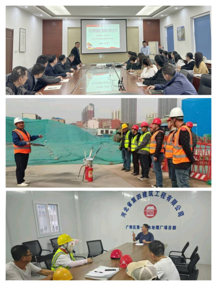 排查隱患,防患于未然。五分公司組織機關(guān)與項目部進(jìn)行了全面深入的火災隱患大排查。機關(guān)重點(diǎn)針對辦公室、電動(dòng)車(chē)棚、食堂和職工宿舍等區域展開(kāi)細致排查,并及時(shí)整改發(fā)現的隱患。11月12日,廣陽(yáng)項目部組織全體施工人員開(kāi)展學(xué)習與消防演練活動(dòng),特別針對塔司、電梯司機、信號工等特殊工種作業(yè)人員進(jìn)行了有針對性的培訓,結合施工現場(chǎng)實(shí)際情況詳細解讀消防法規的核心要點(diǎn),深入剖析因電氣故障、明火使用不當等引發(fā)火災的典型案例,著(zhù)重強調塔吊、施工升降機等設備運行區域及操作室的防火要點(diǎn)以及消防器材的正確配備、使用和日常維護方法。此外,因當地環(huán)保政策停工的藁城小學(xué)、定興糧庫項目,安排專(zhuān)人值守,定期加強對消防設施的日常檢查,并詳細記錄各類(lèi)消防設施的狀態(tài)信息,如滅火器壓力是否正常等,確保停工期間消防設施的完好有效,將火災隱患扼殺在萌芽狀態(tài)。(五分公司)