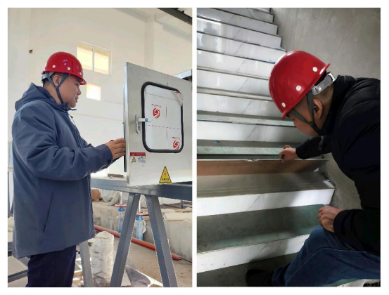 13日,項目部開(kāi)展安全大檢查,重點(diǎn)聚焦宿舍、食堂、現場(chǎng)臨電及易燃易爆品存放等關(guān)鍵區域。在宿舍區,檢查人員逐間排查,嚴禁私拉亂接電線(xiàn)以及使用大功率電器,并在醒目位置張貼禁用標識。食堂方面,著(zhù)重全面檢測燃氣設備,確保無(wú)泄漏情況。對于現場(chǎng)臨電設施,仔細查看配電箱內電器元件有無(wú)損壞、電線(xiàn)電纜是否存在破損老化問(wèn)題,同時(shí)確認漏電保護器靈敏有效。在易燃易爆品存放倉庫,檢查消防設施是否齊全,查看物品是否按規定分類(lèi)存放,并確認已設置明顯警示標識。為進(jìn)一步提升作業(yè)人員的安全意識,15日項目部召集全體人員開(kāi)展安全培訓,培訓內容緊密?chē)@臨時(shí)用電、設備安裝操作等關(guān)鍵環(huán)節展開(kāi),嚴守用電安全紅線(xiàn)、保障設備安裝質(zhì)量。同時(shí)對新入場(chǎng)作業(yè)人員開(kāi)展了三級安全教育。
