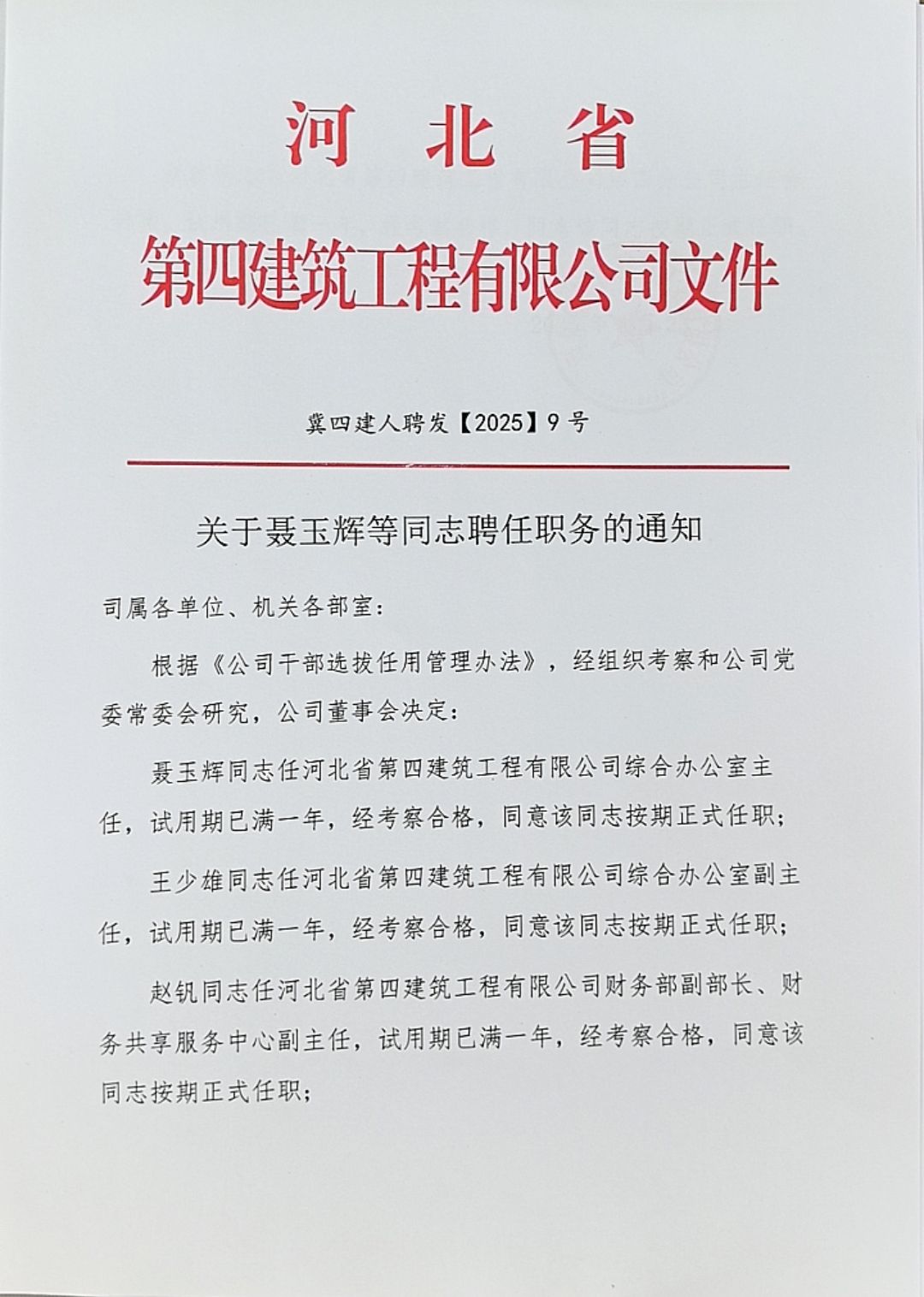 關(guān)于聶玉輝等同志聘任職務(wù)的通知